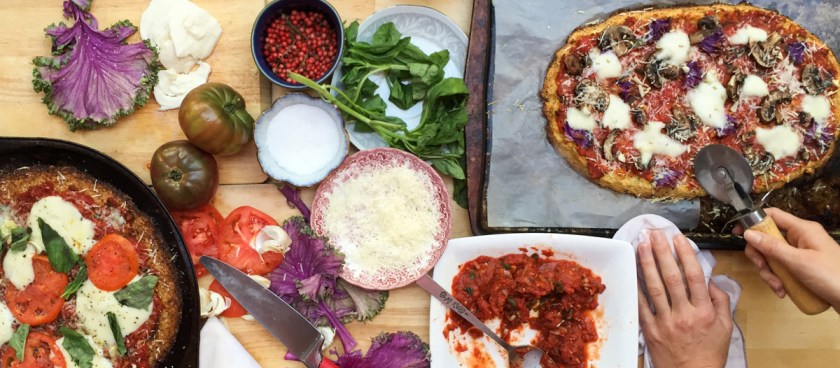 I have been experimenting with Cauliflower Pizza Crust because it’s a wonderful gluten-free alternative. The first time I tried to make this vegetable-based crust, I learned a lot. I found that the drier my ingredients, the crisper the crust. All of it was delicious, especially the crisp edges, but the center of the pizza had more of a polenta consistency than a crust. We ended up eating the pizza with a fork, which goes against that satiating feeling of picking up a slice with your hands and devouring it. As your resident foodie, I went back to the drawing board. I’m a fan of New York-style thin crust, so here’ s a few tips: