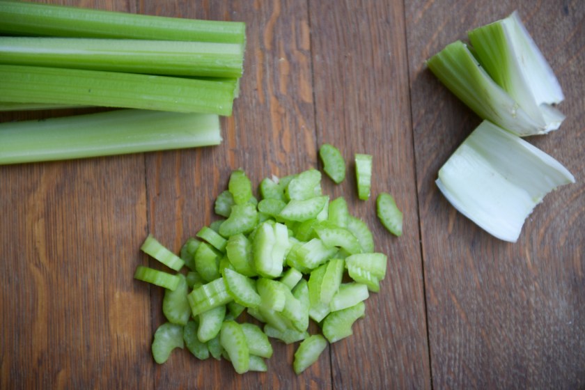 TIP: The smaller you make the celery chunks, the more flavor it will absorb from the other ingredients.