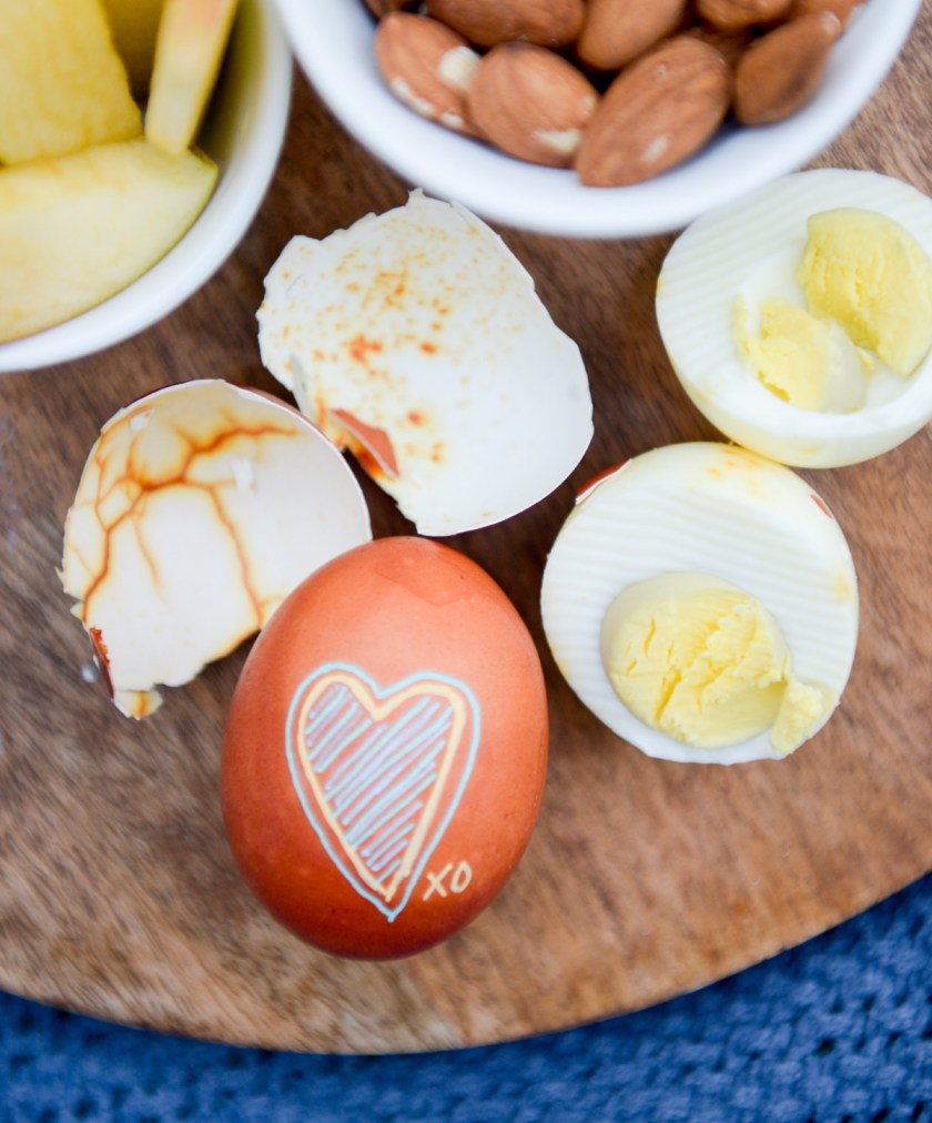 *A white-shelled egg is a better palette to soak up the color than brown eggs.