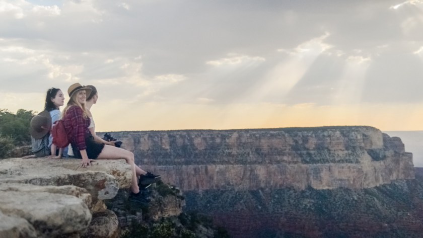 With only a few hours to spare, our plan was to walk the South Rim’s paved footpath for as long as we could, making sure to catch the sunset before having to head back out. Walking into that first canyon view, it happened…the girls stopped in their tracks and gasped, falling into sudden silence, the immense beauty of the canyon completely overwhelming. Nothing else to do but stand there in complete awe and soak it in through all the senses.