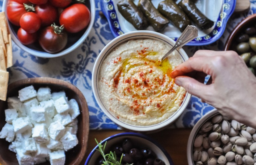 What you are about to read is very coveted, top-secret information. As a Greek girl, hummus has always been a staple at our family table, especially on holidays, when family gatherings traditionally start with mezethes. Fresh-cubed feta cheese, Greek olives, grape leaves and creamy dips with pita bread are dug into by hand over lively conversation before moving to the table for the main meal. The star of our mezethes spread is always my mother’s homemade hummus. This recipe has been passed down from generations of Greek women, originating with my grandmother’s relatives on the island of Samos, traveling with my Yiayia to America where it settled into New York’s immigrant city blocks and finally landing with my mother in sunny Southern California and onto our suburban table. Over many years in LA, our family hummus was the favorite attraction at every gathering even before it became the de rigueur go-to Cali party snack. Many of our friends growing up were exposed to hummus for the first time at our house. But no matter how popular it gets and how much other hummus exists in the world these days, the consensus remains the same from everyone who has ever tasted it…my mom’s hummus is The Best. Hummus. Ever. So much so that people talk about it for years afterwards. Maybe it’s the generations of perfecting the recipe, maybe it’s the love poured into every batch, maybe it’s a little bit of unknown Greek magic. But one thing is for certain: once you eat Mama Gina’s Hummus, there’s no going back. So with my mom’s permission, we share our top-secret family hummus recipe with you here now, but try it at your own discretion. Your hummus eating days will never be the same again. Enjoy!! And as always…share the love!