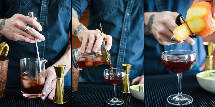 Antica Carpano? Check. I hope–this is the current industry standard for quality sweet vermouth. Don’t panic if your local pub doesn’t pour this, any decent sweet vermouth will do–just don’t stoop too low or allow them to pour anything from a dusty bottle.