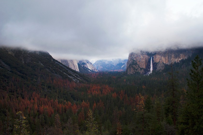 Honestly, I had no idea what I was getting myself into. I just knew I wanted to go. So after a 4 ½ hour car ride armed with my sidekicks—a box of Cheez-Its, a few white chocolate macadamia nut Cliff Bars and a Nikon camera—I ended up in the middle of Yosemite on January 1st. When I got to the entrance, the park ranger handed me a map. My heart started racing—I couldn’t believe I made it to Yosemite! I didn’t even look at the map because I didn’t want to waste any time. Immediately, everything seemed surreal. Giant trees, towering mountains and low-hanging clouds engulfed me. I drove up a curvy road surrounded by sequoias. The forest became denser and the light peeked through the pines. There were patches of snow and ice on the ground, making the deep greens and reds from the trees illuminate the park. I realized I was naive to how massive Yosemite is—it felt endless. While driving up my first mountainside, white clouds covered most of the overlooks and the roads were hidden by dense fog, obscuring my view. But I was on the hunt, determined to see something through the mists. I finally saw a sign to Bridalveil Fall, so I quickly parked and ran out of my car to see this massive, powerful waterfall peeking through the trees. I just stood there staring, thinking how I’ve never felt so small. I hopped in my car again and nothing felt real…I just knew I had to keep exploring.
