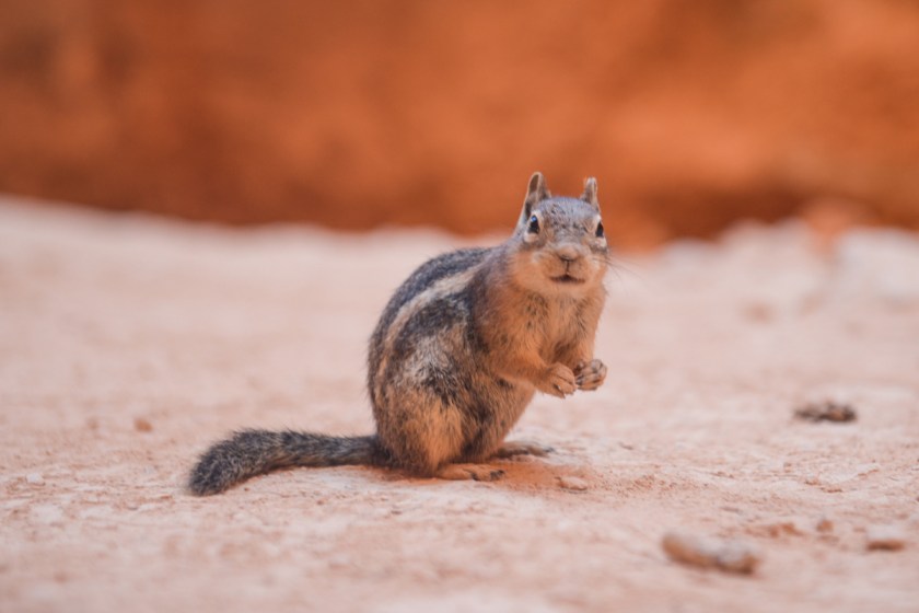 After mapping out the domain, we hit the trails of the main event taking the Navajo Loop Trail directly into Bryce Amphitheater. A “moderate hike” that takes you down into electric nectarine slot canyons dotted with neon green fir trees before opening out into the sweeping amphitheater, the Navajo Trail delivers all the best of Bryce in just about two hours. We meandered through walls of tall crumbly hoodoos that made us feel like both a band of ancient archeologists and intergalactic futuristic explorers on an excavation mission all at the same time. We even met the “natives”—friendly chipmunks who love to come visit and have a chat to showcase their local way of life.