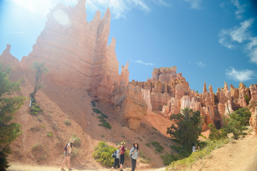 The day we went was sweltering. Aside from the slot canyon, most of the Navajo hike is in direct sunlight—so hats, sunglasses, sunscreen and tons of water are an absolute necessity. But the rewards for trudging through the sun here are enormous. You will never see anything like this landscape anywhere else on Planet Earth, guaranteed. Its beauty is overwhelming—it will stun you into silence, fill you with awe and absolutely take your breath away.