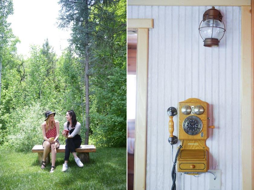 On the hunt for the perfect pied-à-terre to kick up our feet and rest our heads during our Summer Sirens Utah Roadtrip, we knew we hit the jackpot when we stumbled across Happy Ours Ranch on VRBO.com. It was everything we could have hoped for and more: a tiny wood cabin (our cabin obsession is real), close to both Zion and Bryce, large enough for a gaggle of gals and our belongings, double bathrooms and showers to accommodate all those ladies in the morning, a full kitchen, a private laundry room to keep our clothes fresh during our weeklong stay, clean, quiet, comfy, cozy, 100% one-of-a-kind unique…and most importantly, it had double queen bunk beds made from logs to really create the girls-gone-summer-camp vibe. Our five girls, one Prius landed straight into a little slice of Utah ranch heaven…complete with nuzzling horses!