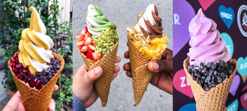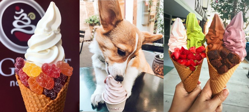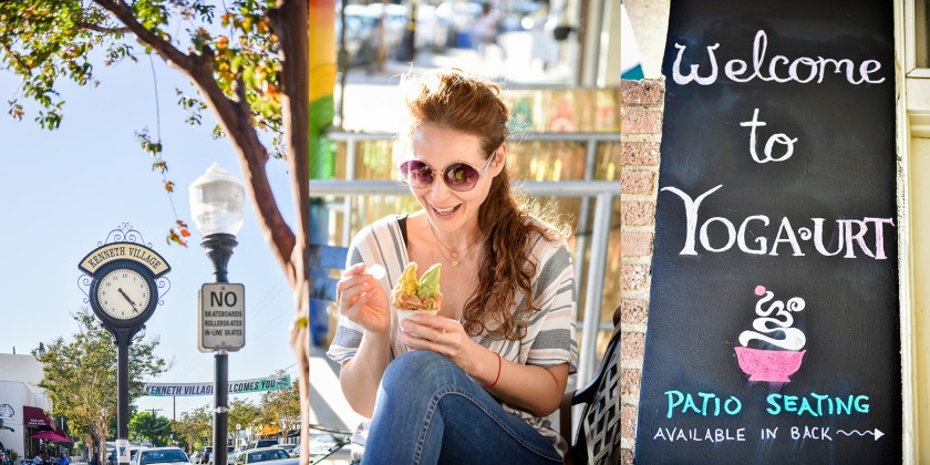Yoga-urt first popped up in Glendale’s adorably quaint Kenneth Village in 2015. We’re always huge fans of any tiny frozen-in-time hidden gem neighborhood tucked away right here inside our bustling city (hello, Montrose!), but Kenneth Village might be the sweetest and tiniest of them all. The one-block strip of Kenneth Road just west of Grandview is as Bedford Falls as we could ever hope to find in LA and well worth a trip out to wander. Dotted with little restaurants, a French patisserie and a cute on-trend clothing boutique, walking along Kenneth Village feels like taking a sudden unexpected vacation. And we all know there’s nothing better to do on vacation than enjoy a delicious, soul-satisfying ice cream cone while taking in the scenery.